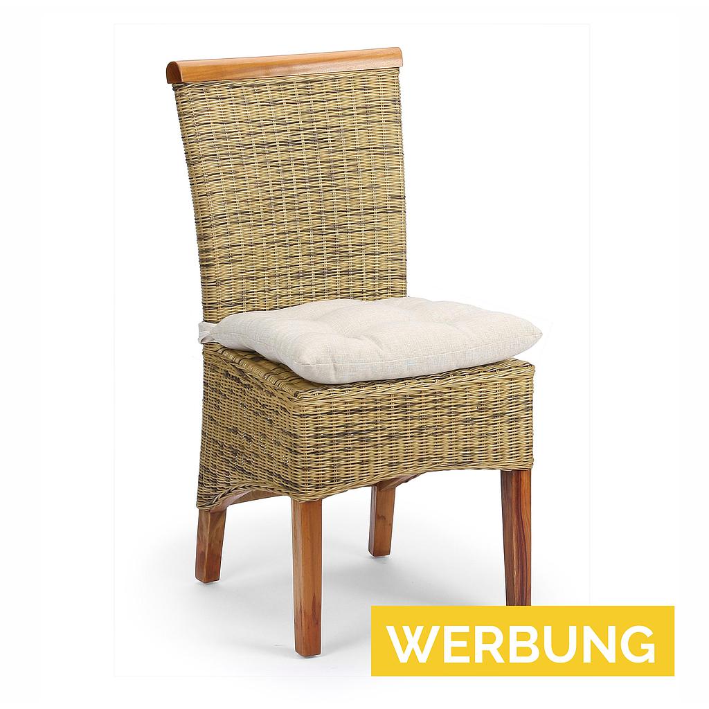 Stuhl/ Hochlehner "FINELINE", fertig montiert. Ein klassisches Rattan-Sitzmöbel. Besonderheit: Dieses Stuhlmodell ist aus nachwachsenden Rohstoffen gefertigt. Der stabile Gestellrahmen besteht aus Massivholz und das Naturgeflecht aus echtem Rattan. Der formschöne "Natur-Klassiker" hat ein dickes Rückenprofil aus Vollholz. Preis ohne Sitzkissen.