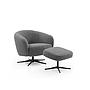 Club-Sessel,  drehbar. Klassische Form. Leger gepolsterter Sitz und Rücken mit guter Körperanpassung. Die hohen Armauflagen (Lehnen), entlasten Schultern und Rücken optimal. Stabiler Drehfuß in Sternform, Metall schwarz, pulverbeschichtet. Dieses Sitzmöbel benötigt wenig Stellfläche und ist trotzdem erstaunlich bequem.